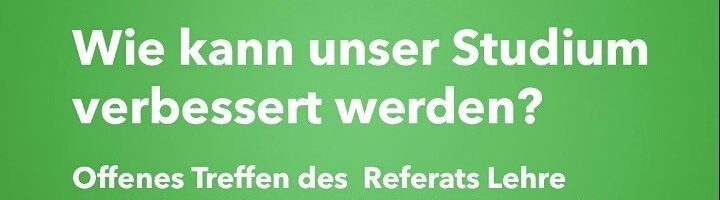 Du quälst dich mit „Integrierten Seminaren“, verzweifelst schon als Ersti am Stundenplan oder möchtest in Q2 endlich etwas verändern? Wo drückt der Schuh, wenn du an dein Studium denkst? Komm am Mittwoch zum Treffen des Referats Lehre, berichte uns von aktuellen Problemen in deinem Jahrgang. Gemeinsam können wir unseren #Modellstudiengang …