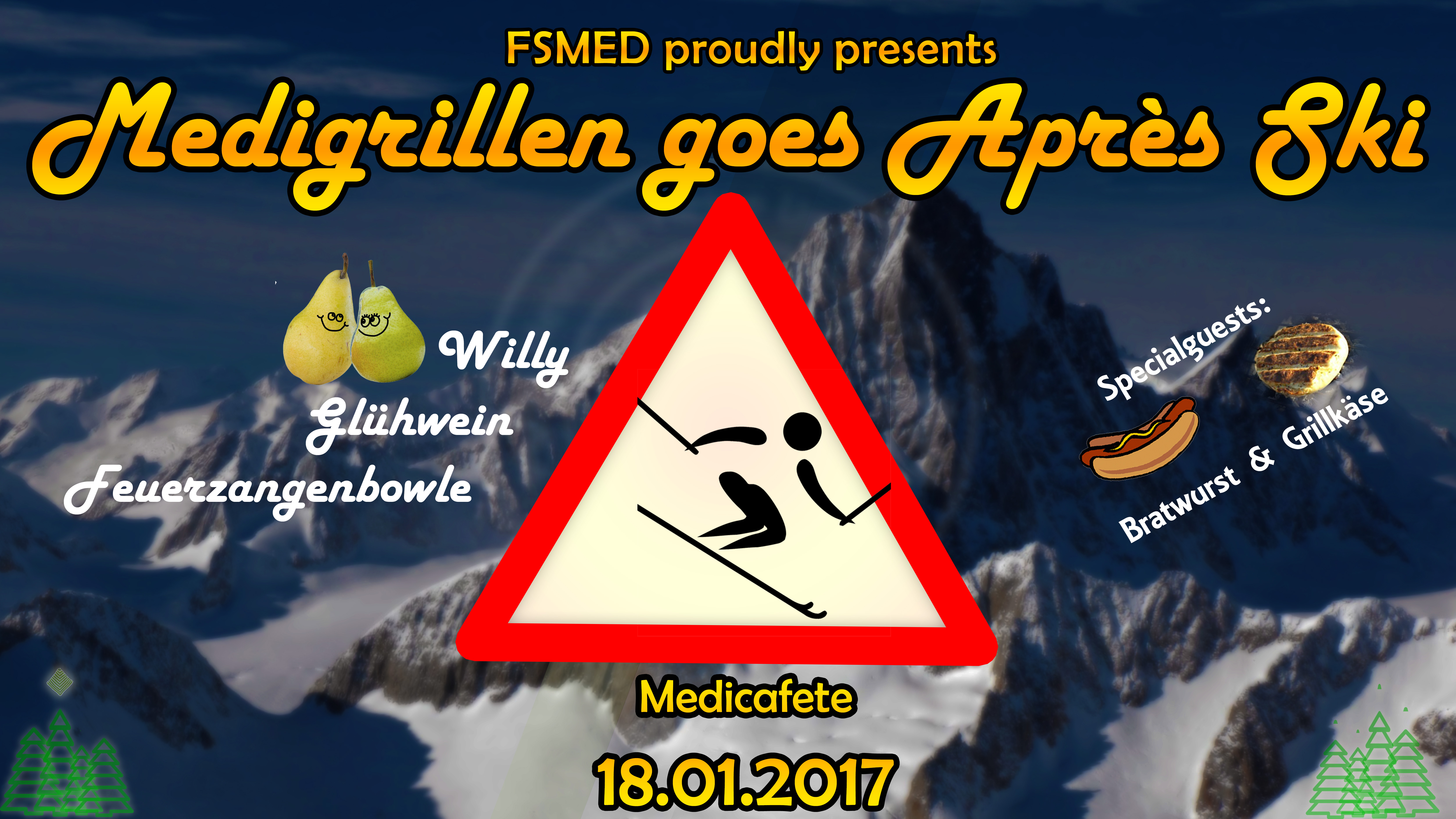 am Mittwoch, den 18.01. haben wir ein ganz besonderes Zückerli für euch: Das Referat Aktion ruft zum Medigrillen, diesmal unter dem Motto Après Ski. Wir lassen uns nicht lumpen und haben für nächste Woche beim Wetterdienst Winter bestellt, zieht euch also warm an und bringt eure Schlitten, Skier und Snowboards mit!