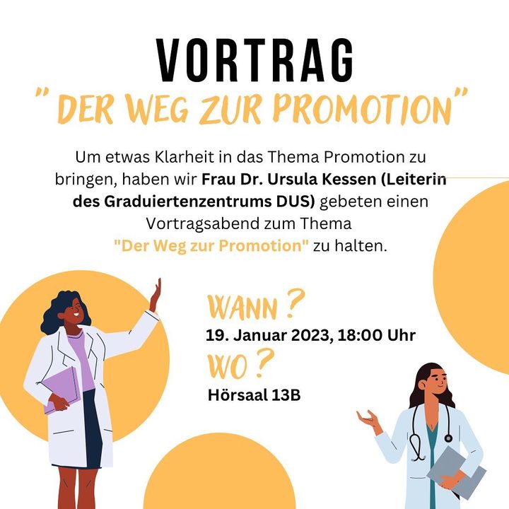 Um etwas Klarheit in das Thema Promotion zu bringen, haben wir Frau Dr. Ursula Kessen, die Leiterin des Graduiertenzentrums Düsseldorf, gebeten, einen Vortragsabend zum Thema „Der Weg zur Promotion“ zu halten.